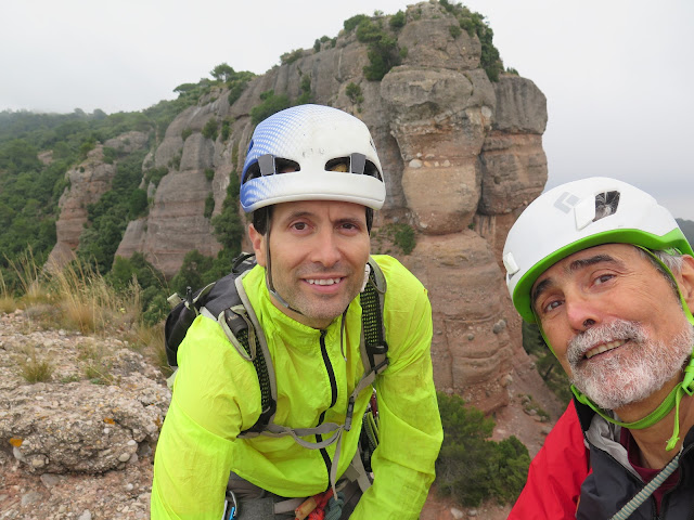 Ha estat una escalada mes entretinguda del que esperàvem, si la primera tirada és un xapa i segueix....amb major o menor dificultat tècnica, aquesta segona tirada demana saber moure's en terreny d'aventura, sortosament d'això en sap prou el Jordi!El pas clau, sortir del primer bolt demana sang freda, per la dreta trobarem una Sabina tranquilitzadora, però ben amunt, per l'esquerra, s'haurà de probar, jo de segon hi vaig passar i penso que és millor per allà...però anant de segon tot canvia.