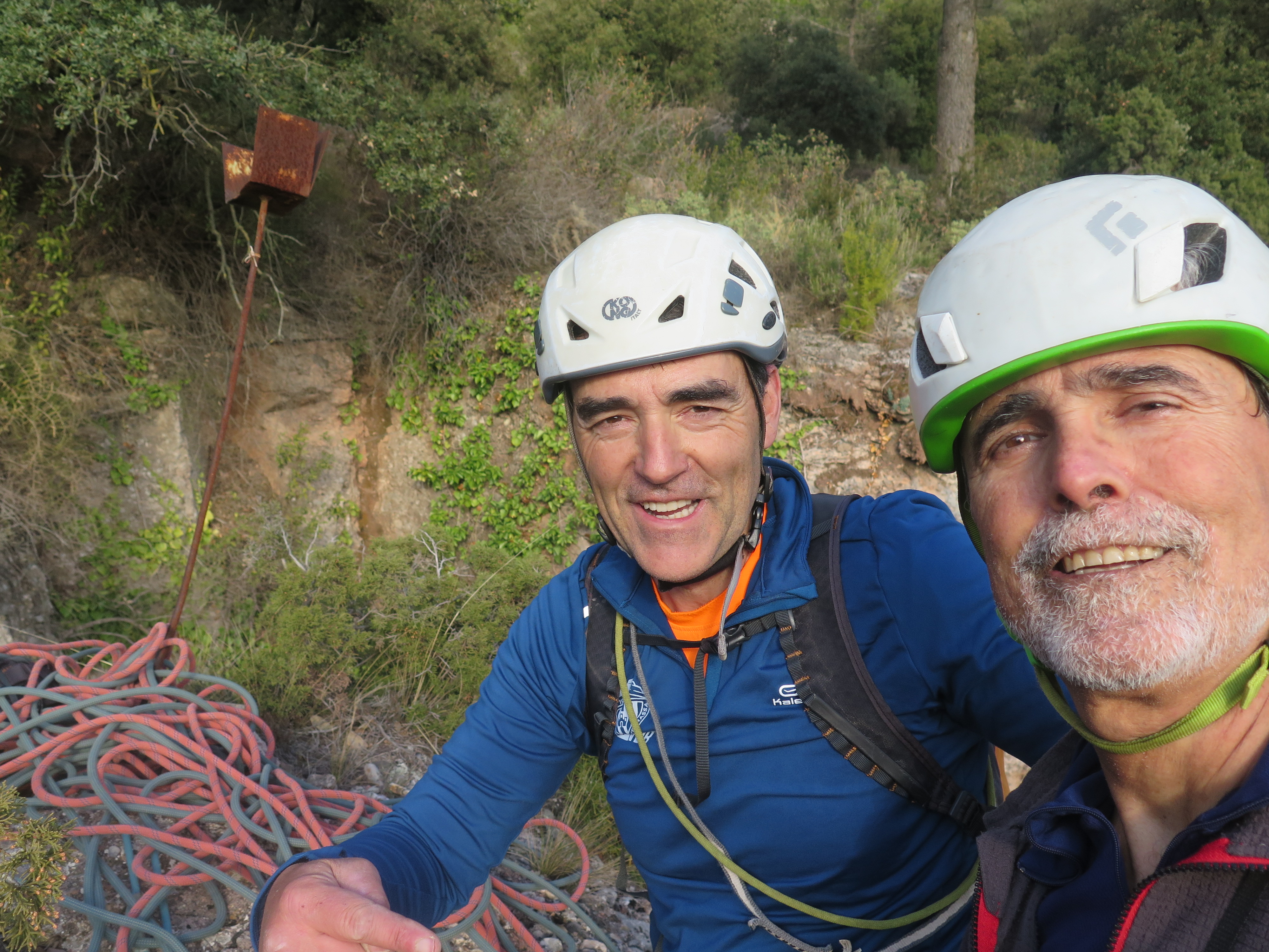 De la reunió al peu del ràpel caminarem a buscar la propera agulla, aquesta és ben airosa i divertida, amb rocam generós i prou sólid fins al cim, aquí hi ha la possibilitat de fer una reunió, però preferim continuar; el pas al mur final s'ha de mirar i una vegada enfilats l'escalada esdevé plaent fins al cim.